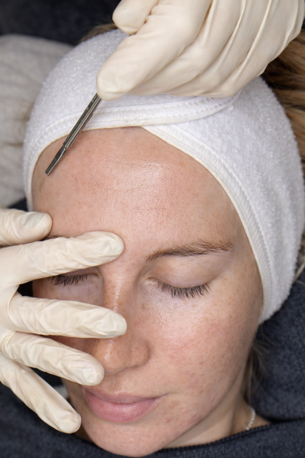 A physical exfoliation treatment that uses a sterile surgical blade to gently remove dead skin cells and fine facial hair from the skin's surface.